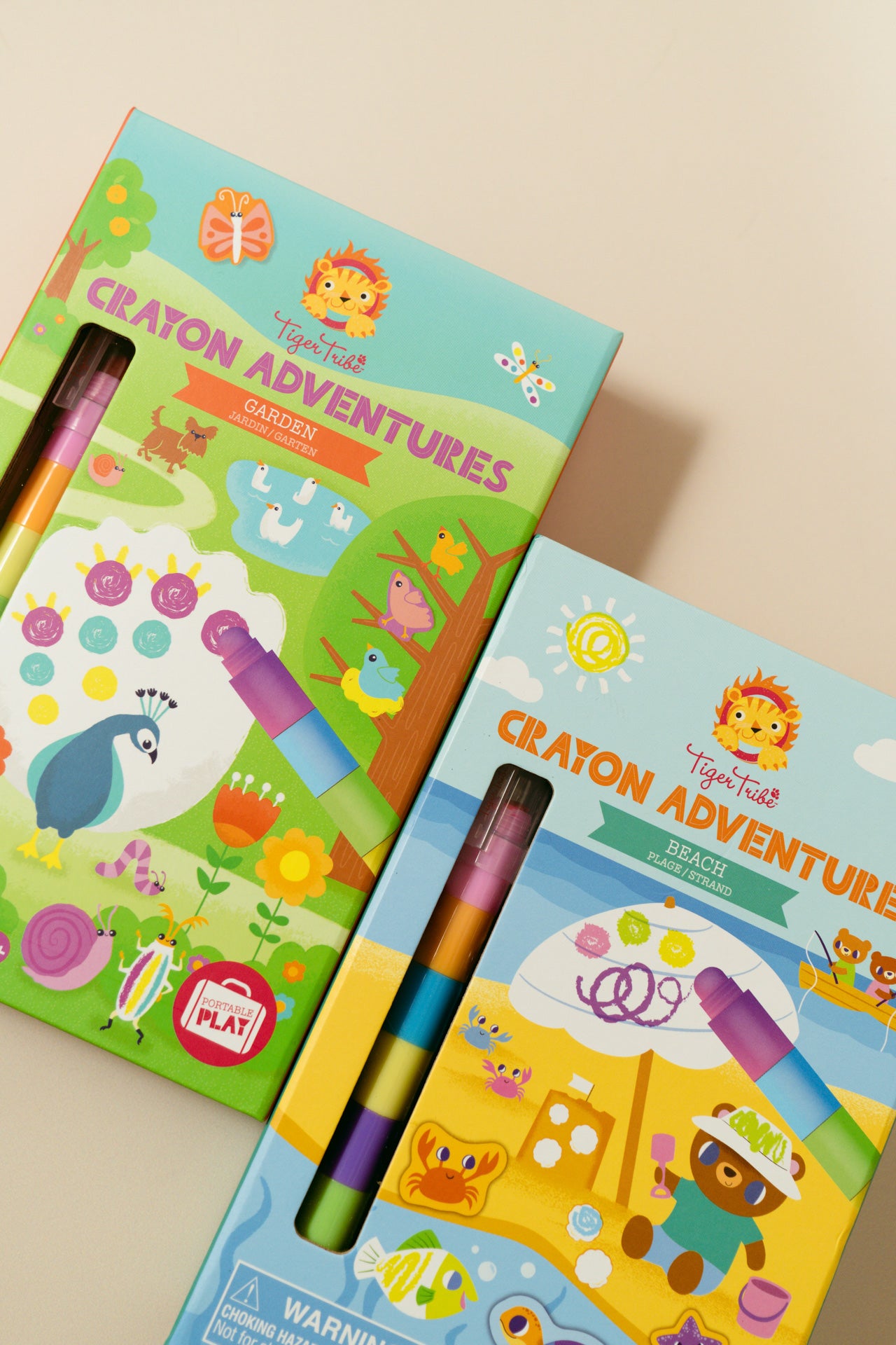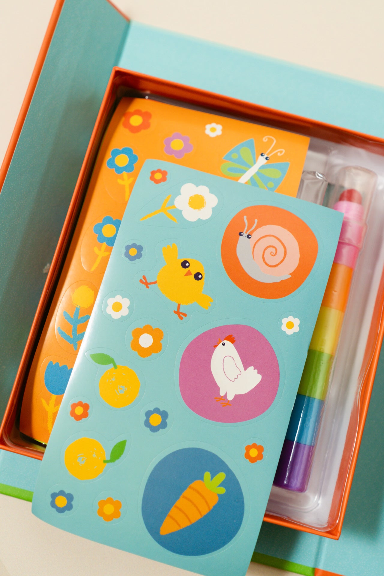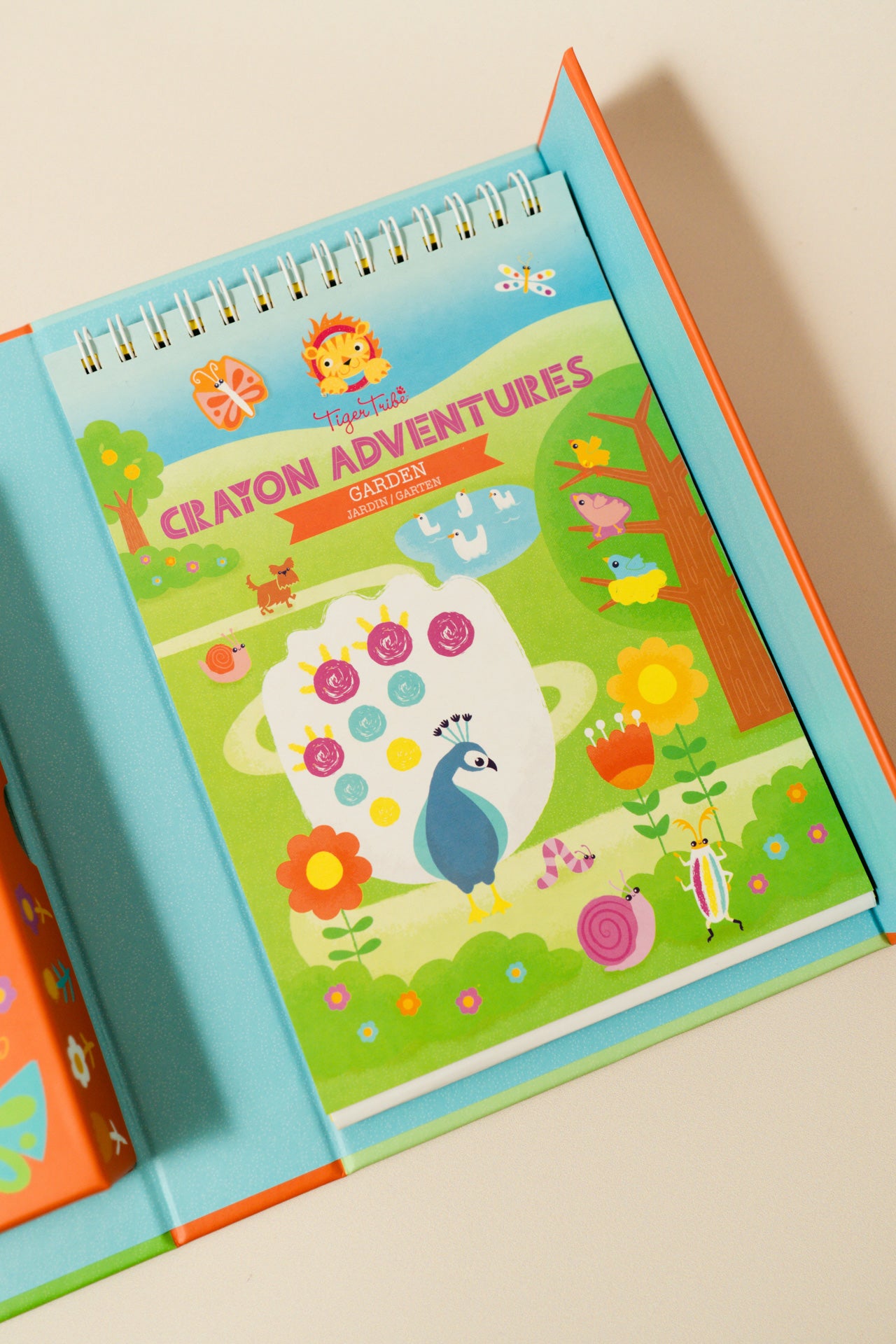 Use the crayons to colour in, draw and complete the fun garden themed activity sheets, then decorate everything with loads of stickers.
