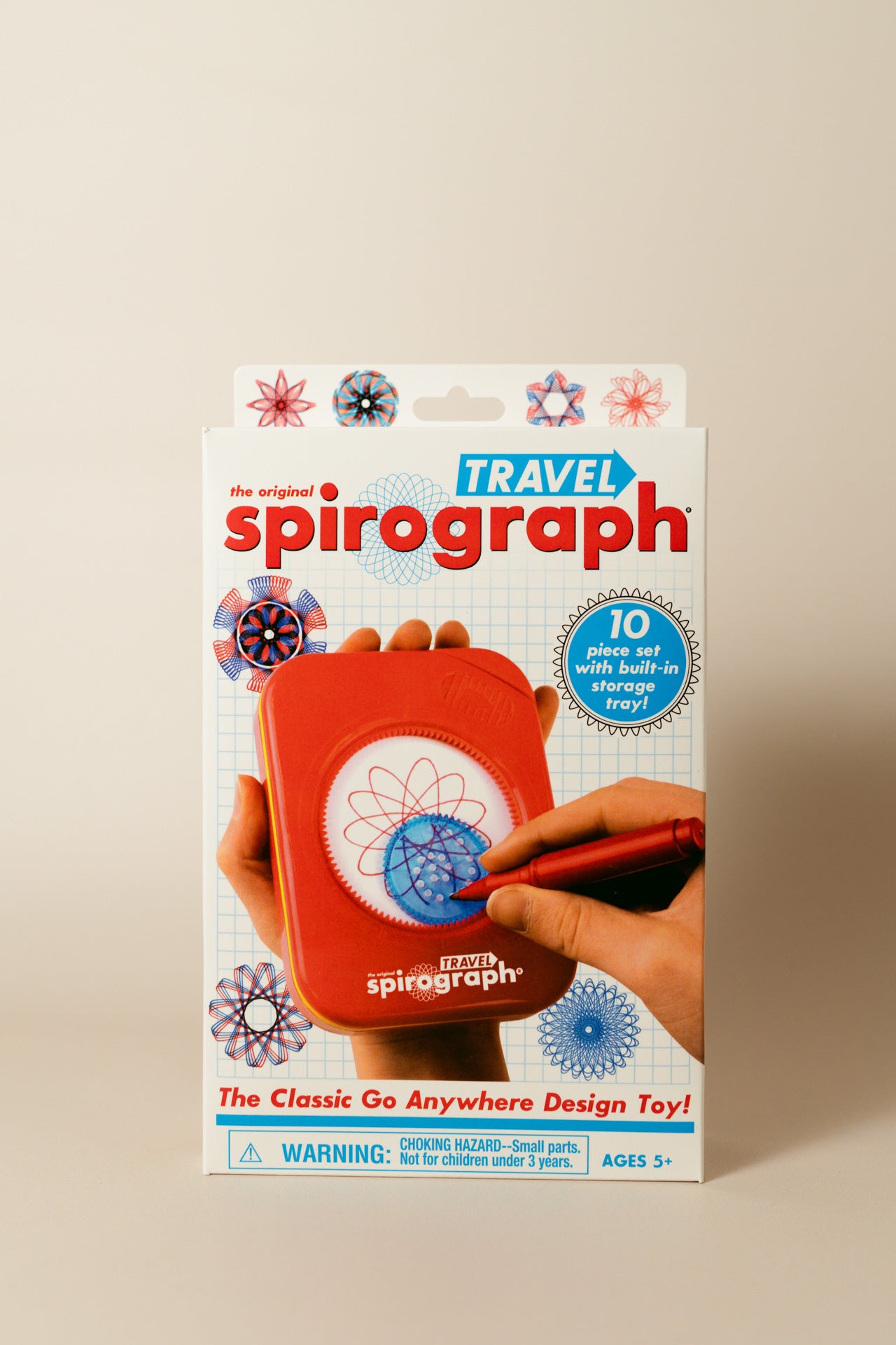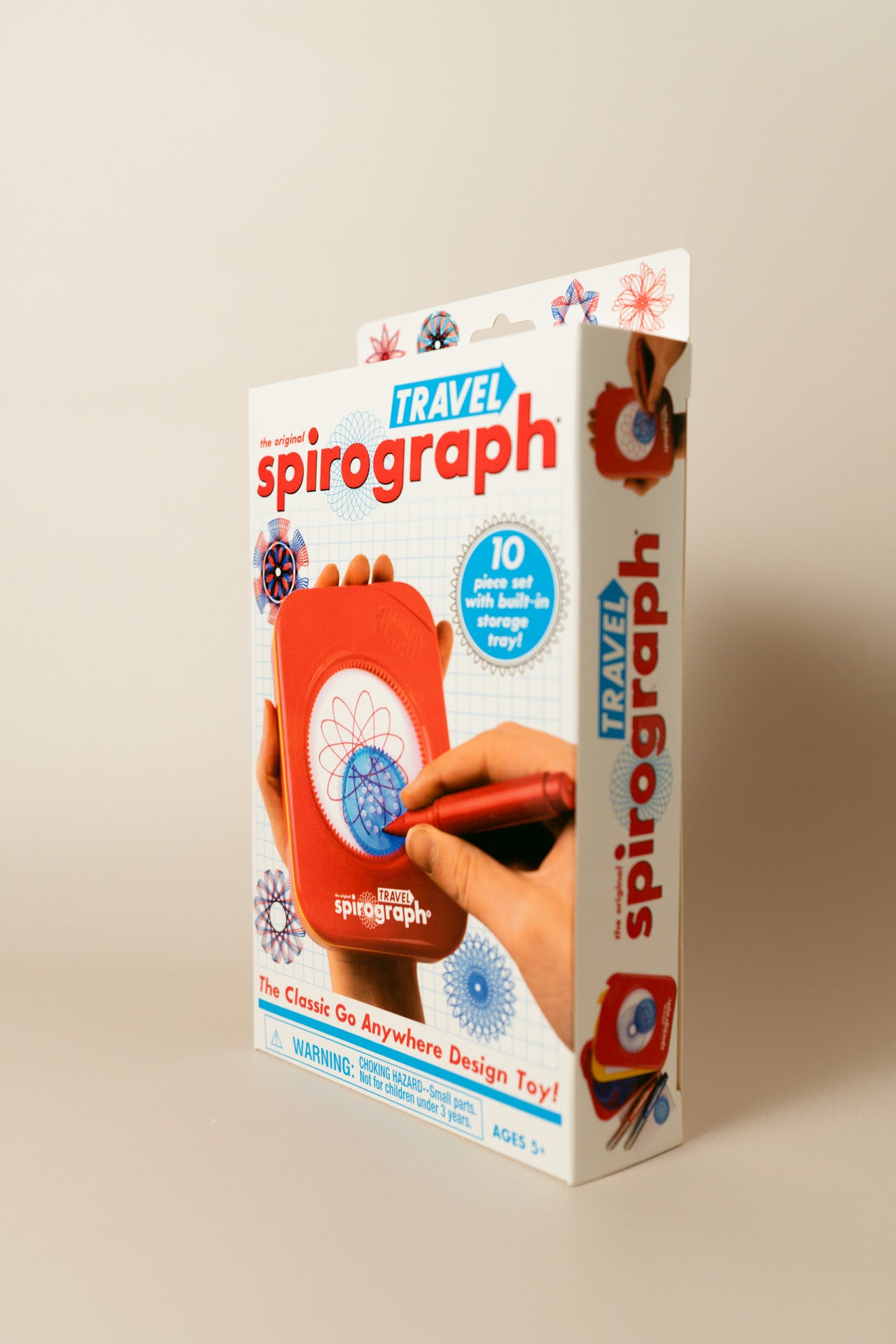 Everything simply stows away inside the box with a snap! Here, there, everywhere - Spiraling artwork comes to life with Travel Spirograph.